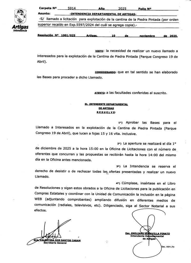 LLAMADO A EXPLOTACIÓN DE LA CANTINA DE LA PIEDRA PINTADA Res.1001-025_-_10_de_noviembre_-_Expte.5914-2025Descarga